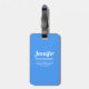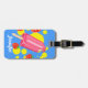 En personlig bagagetagg med ett summariskt tema. Designad med rosa popsicle och vissa röda jordgubbar som tumlar runt popsikeln tillsammans med lite gult stänk. Blå bakgrund.