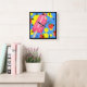 En fyrkantig klocka med ett summerat tema. Designad med en rosa popsikel och vissa röda jordgubbar och gult stänk. Blå bakgrund.