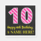 Den här roligtens pappra napkin-design med födelsedagskalemat har ett stort nummer "10", med en ljus rosa och mörk rosa rand mönster. Det innehåller också budskapet "Lycklig 10:e födelsedag" och personlig namn. Bakgrunden är svart på färgad. Roligt, anpassadets födelsedag pappra blöjor som denna kan användas vid någons tioårsfirande. [~Z0000380]