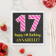 Den här roligtens pappra napkin-design med födelsedagskalemat har ett stort nummer "17", med en ljus rosa och mörk rosa rand mönster. Det innehåller också budskapet "Lycklig 17:e födelsedag" och ett anpassade namn. Bakgrunden är svart på färgad. På födelsedagen kan pappra servetter som denna användas vid en party som firar någons 17-årsdag. [~Z0000380]