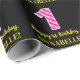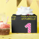 Den här roligtens födelsedagskalemetterade pappra utformning har ett stort nummer "1", med ett ljust rosa och mörk rosa rand mönster. Det innehåller också budskapet "Lycklig 1:a födelsedagen" och ett redigerbart namn. Bakgrunden är svart på färgad. Födelsedag som är papper som detta kan användas när en gåva eller present i firande på någons första födelsedag är ge. [~Z0000376]
