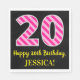 Den här roligtens pappra napkin-designen har ett stort nummer "20" med mörk rosa och ljusa rosa rand mönster, tillsammans med meddelandet "Lycklig 20:e födelsedag" och personlig namn. Bakgrunden är svart på färgad. Roligt, personlig pappra blöjor av det här slaget kan användas vid en födelsedagskalender som hålls för att hedra någons tjugonde födelsedag. [~Z0000380]