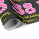 Den här roligtens födelsedagskalemetterade pappra utformning har ett stort nummer "38", med ett ljust rosa och mörk rosa rand mönster. Det innehåller också budskapet "Lycklig 38:e födelsedag" och ett anpassade namn. Bakgrunden är svart på färgad. Det kan vara ett roligt att slå in en gåva eller gåva som ges till någon som firar sin 38-årsdag... papper på födelsedagen. [~Z0000376]