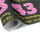 Den här roligtens födelsedagskalemetterade pappra design har ett stort nummer "43", med ett ljust rosa och mörk rosa rand mönster. Det innehåller också meddelandet "Lycklig 43:e födelsedagen" och ett eget namn. Bakgrunden är svart på färgad. Det kan vara ett roligt att slå ihop en gåva eller present som ges för att fira någons fyrtiotredje födelsedag... -...papper. [~Z0000376]
