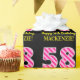 Den här roligtens födelsedagskalemetterade pappra utformning har ett stort nummer "58", med ett ljust rosa och mörk rosa rand mönster. Det innehåller också meddelandet "Lycklig 58:e födelsedagen" och ett eget namn. Bakgrunden är svart på färgad. Det kan vara ett roligt att slå ihop en gåva eller present som ges för att fira någons 58-årsdag... papper på födelsedagen. [~Z0000376]
