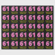 Den här roligtens födelsedagskalematerade pappra utformning har ett stort nummer "61" med ett ljust rosa och mörk rosa mönster, tillsammans med meddelandet "Lycklig 61:a födelsedag" och ett eget namn. Bakgrunden är svart på färgad. Roligt som är papper som denna kan användas när man slår in presenter som ges till någon i firande på deras sextio första födelsedag. [~Z0000376]