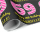 Den här roligtens födelsedagskalemetterade pappra utformning har ett stort nummer "69", med ett ljust rosa och mörk rosa rand mönster. Det innehåller också meddelandet "69:e födelsedagen i Lycklig" och ett eget namn. Bakgrunden är svart på färgad. Att packa pappert som detta kan vara ett roligt för att packa en födelsedagspresent eller gåva till någon som firar sin sextionionde födelsedag. [~Z0000376]