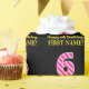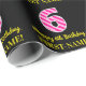 Den här roligtens födelsedagskalematerade pappra utformning har ett stort nummer "6" med mörk rosa och ljusa rosa rand mönster, tillsammans med meddelandet "Lycklig 6e födelsedag," och ett eget namn. Bakgrunden är svart på färgad. Roligt som är papper som denna kan användas när man slår in presenter som ges till någon i firande på deras 6e födelsedag. [~Z0000376]