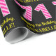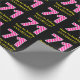 Den här roligtens födelsedagskalemetterade pappra design har ett stort nummer "71", med ett ljust rosa och mörk rosa rand mönster. Det innehåller också meddelandet "Lycklig 71:a födelsedag" och ett eget namn. Bakgrunden är svart på färgad. Det kan vara ett roligt att slå in en gåva eller present som ges för att fira någons 71-årsdag... papper att slå in på. [~Z0000376]