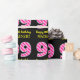 Den här roligtens födelsedagskalemetterade pappra design har ett stort nummer "99", med mörkens rosa och ljusa rosa rand mönster. Det innehåller också budskapet "99:e födelsedagen i Lycklig", och en personlig namn. Bakgrunden är svart på färgad. Att packa pappert som detta kan vara ett roligt för att packa en födelsedagspresent eller gåva till någon som firar sin 99-årsdag. [~Z0000376]