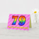 Denna roligt och 79:e födelsedag har en framsida med ett stort nummer "79" med ett färgstarkt regnbågsspektrum som inspirerar gradienten mönster, på en roligt mörk rosa och ljusa rosa hjärtformer som rinner ut i mönster bakgrunden. På framsidan finns också budskapet "79:e födelsedagen Lycklig", följt av en redigerbar mottagare namn. Insidan innehåller ett redigerbart hälsning-födelsedagsmeddelande, eller så kan det kanske rensas och lämnas tomt om ett meddelande ska skrivas för hand i stället. Ett sådant här födelsedagskort i anpassningsbar kan vara en roligt och ett sätt för lycklig att skicka önskemål till någon som firar sin sjuttionionde födelsedag. [~Z0000418]