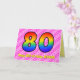 Den här uppseendeväckande och kommande 80-årsjubileet har en framsida med ett stort nummer "80", med en färgstark mönster inspirerad av ett regnbågsspektrum, på en glad mörk rosa och ljusa rosa hjärtformer mot bakgrund av rand mönster. På framsidan finns också budskapet "80-årsdagen Lycklig", följt av en redigerbar mottagare namn. Insidan innehåller ett hälsning-meddelande från anpassningsbarnas födelsedag, eller kan kanske tas bort och lämnas tomt om ett meddelande ska skrivas för hand i stället. Ett sådant här födelsedagskort i anpassningsbar kan vara en roligt och ett lycklig sätt att skicka önskemål till någon som firar sin åttioårsdag. [~Z0000418]