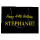 På ena sidan av den här roligten och den enkla presentsäcksdesignen med födelsedagstext finns ett stort nummer "44" med mörkens rosa och ljusa rosa rand mönster. Den andra sidan har födelsedagstexten hälsning "Lycklig 44:e födelsedag" och personlig namn, båda i gultens färgad. Bakgrunden har en svart färg. Sådana presentsäckar kan användas när man slår in presenter eller presenter ges för att fira någons fyrtiofjärde födelsedag. [~Z0000378]