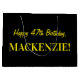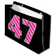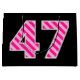 På ena sidan av denna enkla och roligt presentsäckskonstruktion finns ett stort nummer "47" med mörkens rosa och ljusa rosa rand mönster. Undertecknandet "Lycklig 47:e födelsedag" och "anpassade namn" på födelsedagen visas på andra sidan, båda i gultens färgad. Bakgrunden är svart på färgad. En presentpåse som denna kan användas när man slår in gåvor eller presenter ges till någon som firar sin 40-sjunde födelsedag. [~Z0000378]
