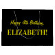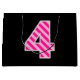 Den ena sidan av den här enkla och roligt presentsäcksdesignen har ett stort nummer "4" med mörkens rosa och ljusa rosa rand mönster. Den andra sidan har hälsning-födelsedagsmeddelandet "Lycklig 4e födelsedagen" och personlig namn, båda i gultens färgad text. Bakgrunden är svart på färgad. Sådana presentsäckar kan användas när man slår in presenter eller gåvor som ges för att hedra någons fjärde födelsedag. [~Z0000378]