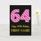 Roligt Rosa Stripe "64", Lycklig 64:e födelsedagen Kort