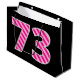 Den ena sidan av den här roligten och den enkla presentsäcksdesignen med födelsedagstext har ett stort nummer "73" med mörkens rosa och ljusa rosa rand mönster. Den andra sidan har hälsning-födelsedagstexten "Lycklig 73:e födelsedagen" och ett redigerbart namn, båda i gultens färgad. Bakgrunden är svart på färgad. En presentpåse som denna kan användas när man slår in presenter eller ger gåvor till någon som firar sin sjuttiotredje födelsedag. [~Z0000378]