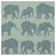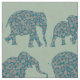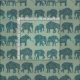 En roligt Fabric, med rader av Elephant silhouettes, fylld med mörk blått och burgundy Paisley mönster, på en Sage Grönt-bakgrund. En del av Posh & Painterly "Heffalumps"-samlingen.