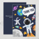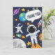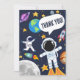 Rolig design av yttre rymden med astronautplaneter måne och stjärnor, söta barn tackkort.