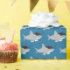 Roligt studenten, papper med mönster söt, haj i studentmössor med examensbevis i blå bakgrund. Gå och hämta en eller två till din gåva. Roligt Shark Studenten Wrapping Papper helgdagskonstruktion | ©Melissa Patton - Artist/Illustrator
