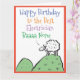 Grattis på födelsedagen till en elektriker. Lönsam tecknad av ett får högst upp på backe. Fåren säger "Best Baaa None". Lägg till ett meddelande från avsändaren.