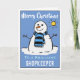 Roligt Snögubbe julkort för en butiksinnehavare Helgkort