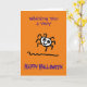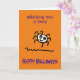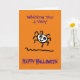 Tecknad bild som visar en söt och glad spindel. Kortet säger "Wishing You a Very Happy Halloween" på framsidan och på insidan står "Have a great night". Personifiera enkelt detta kort genom att redigera valfri text i mallen.