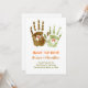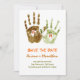 två händer stämplar med brudens och brudgummens namn bokstäver. Roligt sött original design för spara datum meddelanden.