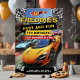 Skaffa redo för ett åtgärdspaket i firande med eleganta sportbilar, schaktat flaggor och pulserande tävla färg som gör varje födelsedagsevenemang spännande.
