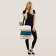 Roligt Teal Gult Tävla Rand White Background Tygkasse