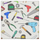 Denna väv, med illustrationer av hand-verktyg och maskinvara, är underbar för kläder för framtida handymän och för hantverkare, entreprenörer och byggnadsarbetare.