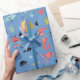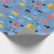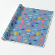 Den här vackra pappra inslagningen har en blå bakgrund med söta havslevande tecknader, inklusive rödsjöar, gult, svarta och ljusblå fiskar, roligt rödkrabba, stjärnfisk och lite sjögräs.