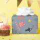 Denna vackra pappra förpackning har en mörk grått-bakgrund med söta havslevande tecknader, inklusive rödsjöar, gult, svarta och ljusblå fiskar, rödkrabba, stjärnfisk och vissa sjögräs.