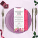 Inslag: Vibranta blommigtar med vattenfärg som accentueras av roligt, modernt typsnitt. Har överordnat namn och två förnamn och efternamn. Färg: Violet, plommon, fuchsia, grönt, gult, smörkopp, . Teman: Roligt, modern, nyfiken, vibrerande, vår, sommar, tidlöshet, romantik, trädgård. Samling: Roligt Vibrant Violet Fuchsia Blommigt Bröllop-insamlingstyp: Meny