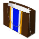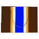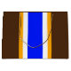 Den här fet, färgstarka designen har vita och gyllene ränder för lodrät med gult som belyser ett stort, starkt blått center rand. Tillgränsande mörk kakaobunt kant rand kompletterar den sportiska sammansättningen.