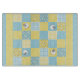 En skärande styrelse med en Faux-lappverksutformning av fårmotiv och mönster i Blues and , som har samordnat Check Ginghams och Polkas Dots.