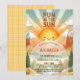 © Socialite Design & LICENCORS. Fira ditt barns födelsedag med en roligt i anpassadet i födelsedagsfest inbjudan i sol som har vattenfärg i inslag och söt solskensdesign. Vår vattenfärg, solskenematerade utformning är perfekt för en roligt i sol firande! Anpassa det precis som du vill.