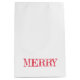 Typografi på vit bakgrund med anpassningsbar MERRY i rött. Enkel att anpassa text, färg. Underbar för Julgipssats, Helgdag Decor, fester, gåvor. Färgfull, modern, Roligt. Blanda och matcha hela julsamlingar efter TMCdesigner.