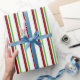 Den här pappra designen har en jul och helgdagar med temat grönt, vit och röd färgad, strimlad mönster. Papper som detta kan användas när man slår in presenter eller gåvor som ges för att fira en födelsedag, ett bröllop, en årsdag eller något annat evenemang.