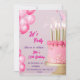 En inbjudan till elegant födelsedagsfest med ett tema för rosa och guld. Kärnan är en vackert dekorerad rosa kaka med gyllene ljus och stjärnformade sprinkler. Rosa vattenfärgballonger ger en positiv tryckning, medan texten framhäver den högstämda tonen med snyggt typsnitt. Perfekt för 13-årsfirande.