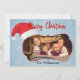 En modern fotojulkortsdesign med din familjefoto som en snyggt ram belyser med en julhatt. Din namn nära grund.