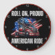 Den här patriotiska väggklockan firar den amerikanska lastbilens anda. Den har en levande halvdant lastbil, försedd med den amerikanska flagga och försedd med en dynamisk röd, vit och blå bakgrund. Den fetstilta texten "ROLL ON, PROUD AMERICAN RIDE" visas på en framträdande plats och skapar ett kraftfullt påstående. Den här klockan är en perfekt som hyllas till chaufförer från lastbil och det nationella pridet.