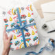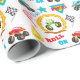 Flera söta monster lastbilar i färg med rött, blått och grönt är utmärkande i mönster på den här söta inslagningen papper för en liten pojke. Tillsammans med bilder i lastbil är det stjärnor, eldlågor, schaktat flaggor och text som säger "Monster" och "Roll på". Lägg till sin egen namn i blått för att anpassa den till honom. Om du vill ta bort namn, så rensa bara fält.