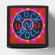 Färglöst ROCK N ROLL-nysignatur utskriven på lådan för små gåvor eller party favors. Se andra party-objekt med den här designen.