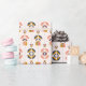 Rolled pink floral wrapping paper with a repeated pattern of stylized flowers and leaves. The pink and green design evokes a cheerful, modern vibe.