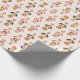 Rolled pink floral wrapping paper with a repeated presentpapper
