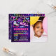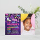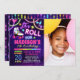 Neon glöde nöjesflickor som rullar födelsedagsfest inbjudan med foto