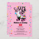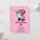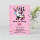 Låt oss Roll, Unicorn, rullskridskor, flickans Födelsedagsfest. Redigerbar åldersinbjudan. Rullskridskor, enmajsstjärnor, stjärnor, rosa bakgrund