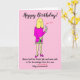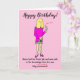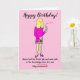 Rolig teckning av en kvinna som inte klippt håret sedan nedstängningen, som håller en flaska vin och ett vinglas för att fira sin födelsedag. Bildtexten lyder 'Grattis på födelsedagen' och 'Namn fick sin Covid-vaccin och var trygg i vetskapen om att hon var helt berusad (Immune är överstruket)'. Kortet har en rosa bakgrund och kvinnan bär en rosa klänning. Anpassa detta kort enkelt genom att redigera texten i mallen. Tack för att du tittade på mina teckningar!