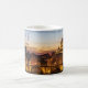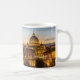 Scenskt kaffe mugg med den vackra staden Rom Italien och Tiberfloden.